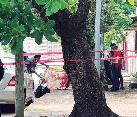 de un vehículo, dejaron el cuerpo que presentaba un impacto de arma de fuego en la cabeza. El cadáver estaba envuelto en una sábana colores rojo con amarillo y presuntamente presentaba signos de tortura.