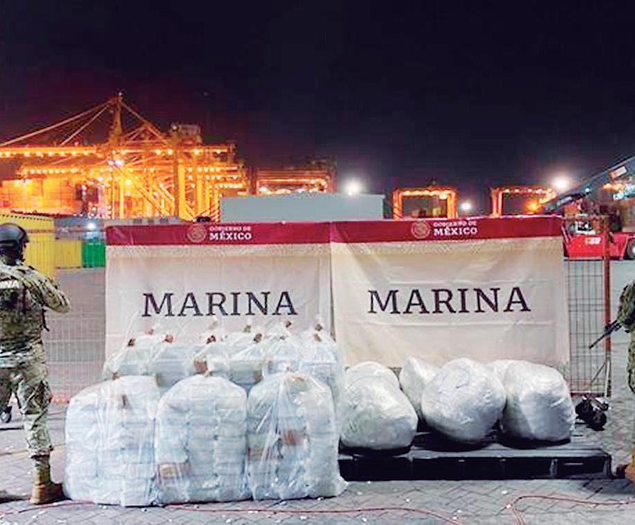 droga estaba oculta en placas onduladas tipo teja, y los agentes encontraron más de 985 kilogramos de lo que se presume es marihuana, que fueron puestos a disposición de las autoridades competentes. El 9 de octubre de 2024, la Secretaría de Marina Armada de México (Semar) confiscó en el puerto de Veracruz más de mil 700 kilogramos de marihuana, escondida en rollos de tela con destino a la República Dominicana. El 22 de julio de 2024, personal naval y de la Aduana Marítima de Veracruz logró incautar 6 mil 877.76 kilogramos de marihuana en el Recinto Portuario de Veracruz. Este decomiso se llevó a cabo tras una maniobra de escaneo en la que se detectaron irregularidades en un contenedor cargado con puertas de madera de pino, también con destino a la República Dominicana. El 26 de junio de 2024, las autoridades aseguraron 279 armas de fuego, 861 cargadores, 14 mil 979 cartuchos útiles, y aproximadamente 79.698 kilogramos de presunto cristal en un domicilio de Boca del Río. La Policía Naval brindó seguridad perimetral durante la inspección, y tanto las armas como la sustancia fueron entregadas a la FGR para la apertura de la carpeta de investigación correspondiente. En enero de 2024, la Secretaría de Marina confiscó 80.66 kilogramos de metanfetamina, con características de cristal, en el recinto portuario de Veracruz. La droga estaba escondida en una caja de engranaje tipo reductor para embarcaciones, con un valor de casi 80 millones de pesos en el mercado. En noviembre de 2023, se decomisaron más de 650 kilogramos de droga en Veracruz, de los cuales 536 kilogramos corresponden a marihuana y 143.7 kilogramos a cocaína. En septiembre de 2023, se aseguraron otros 20 mil kilogramos de metanfetamina. La droga estaba oculta en un contenedor que transportaba alimento para ganado bovino con destino a Rotterdam, Países Bajos. En su interior se hallaron 500 costalillas de 40 kilogramos cada una. Además, en el mismo puerto de Veracruz, se incautaron aproximadamente 204 kilogramos de presunta metanfetamina, camuflada en un contenedor con ganchos en forma de “C” para contrapesos en grúas, también con destino a Rotterdam.