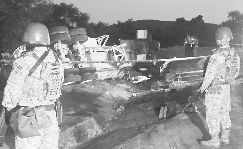 De las unidades se hicieron cargo los oficiales de la Guardia Nacional, quiénes mantuvieron acordonado el lugar, también estuvieron oficiales de agentes de tránsito y policía municipal, mientras los agentes ministeriales personal de Servicios Periciales realizaban las dili-