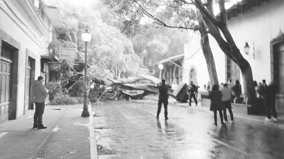 Un árbol de gran tamaño cayó en pleno Centro Histórico de Coatepec, en la parte trasera de la iglesia de San Jerónimo, donde no se reportaron personas lesionadas.