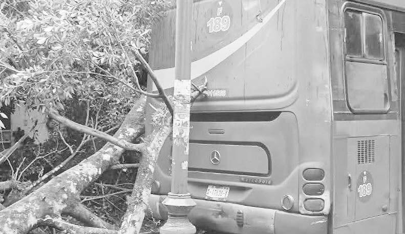 Una parte del árbol golpeó un autobús; sin embargo, afortunadamente solo provocó daños materiales a la unidad de transporte público.