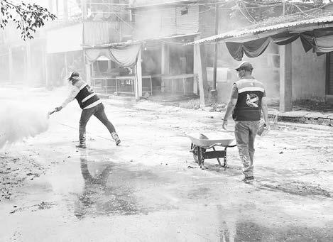 Las tareas consistieron en tirar cal en las avenidas y locales del centro de abasto 5 de febrero, con el objetivo de eliminar cualquier agente patógeno que se pueda presentar en la superficie.