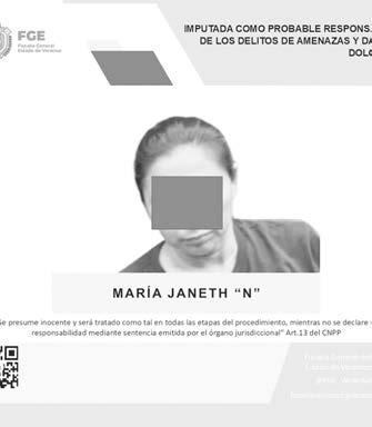 La Fiscalía Regional Coatzacoalcos realizó imputación en contra de María Janeth “N” como probable responsable de los delitos de amenazas y daños dolosos en agravio de la víctima identificada con las iniciales E.L.P. Hechos ocurridos el 4 de junio del año en curso, en la colonia centro de esta ciudad, cuando probablemente amenazó de muerte a la víctima y causó diversos daños a su propiedad. El juez dictó como medida cautelar prohibición de acercarse a la víctima, dentro del proceso penal 126/2024.