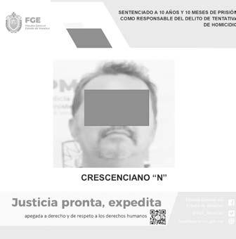 La Fiscalía General del Estado, a través de la Fiscalía Regional Tuxpan, logró sentencia condenatoria de 10 años y 10 meses de prisión en contra de Crescenciano “N”, como responsable del delito de tentativa de homicidio, en agravio de la víctima identificada con las iniciales E.E.C.