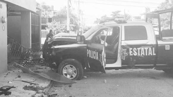 Mientras que una patrulla de la P olicía E statal en esta persecución chocó contra una camioneta color gris y el portón de una vivienda del fraccionamiento San Román.