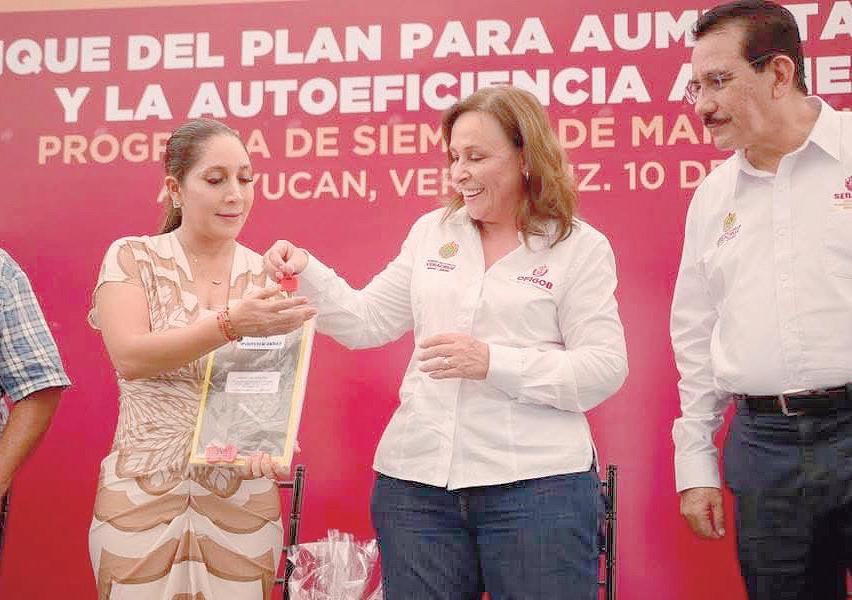 ACAYUCAN.- Con la entrega de maquinaria, semilla mejorada y apoyos económicos directos, la gobernadora Rocío Nahle García puso en marcha el Plan para Aumentar la Soberanía y la Autosuficiencia Alimentaria, como parte de la estrategia para fortalecer la producción de maíz y mejorar las condiciones del campo.