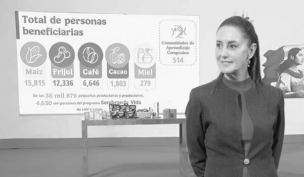 Agregó que, para la producción de todos los alimentos que se venden en las Tiendas Bienestar, se han acopiado en total 355 mil 593 toneladas de maíz, frijol, café, cacao y miel a través de una inversión de 101 mil 179.45 millones de pesos, beneficiando a 36 mil 879 productoras y productores de los cuales 4 mil 630 forman parte de Sembrando Vida de café y cacao.