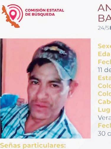 La ficha 24/SB 1175U-24ZC reporta la desaparición de Antonio Barojas Jiménez, de 45 años de edad, con quien se perdió el contacto el pasado 30 de julio de 2024 en Veracruz, Veracruz.