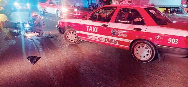 El accidente ocurrió a las 22:50 horas, sobre la carretera federal número 129, en el tramo del Libramiento de Martínez de la Torre, por dónde un taxi y con número económico 903, circulaba de Javier Rojo Gómez hacia la zona centro de esta ciudad, más al llegar a un retorno frente a una empacadora, dio la vuelta en “U”, al hacerlo sin precaución, se impactó de frente contra un motociclista que circulaba sobre esa rúa.