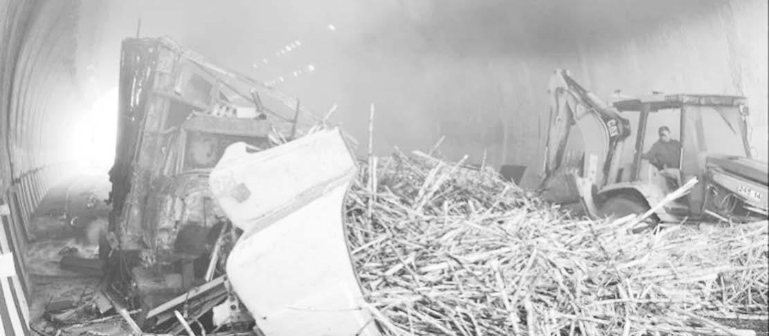 El camión torton cargado con caña de azúcar aparentemente sufrió una falla mecánica en el sistema de frenado cuando descendía las cumbres, chocó dentro del segundo túnel, volcó y se incendió en cuestión de segundos.