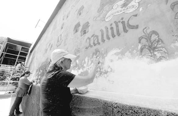 La restauradora explicó que el próximo mes se concluirían los trabajos que incluyen el resanado con arena fina y acabados acordes con la textura original del mural, para conservar la homogeneidad de la técnica y la pintura.