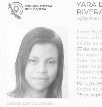 La ficha 24/SB 1361U-24ZN reporta la desaparición de Yara del Carmen Rivera Torres, de 17 años de edad, con quien se perdió el contacto el pasado 8 de septiembre de 2024 en Pánuco, Veracruz.