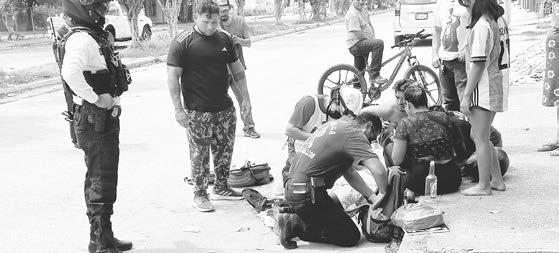 minó volcado entre la maleza y la tierra. Al sitio llegaron oficiales de la Policía Municipal y Estatal, así como de la Guardia Nacional división Carreteras, ademásdeparamédicosdelaAgrupación Samuv y Bomberos de Amatlán, los cuales tomaron conocimiento y confirmaron que no había personas lesionadas ni fallecidas.