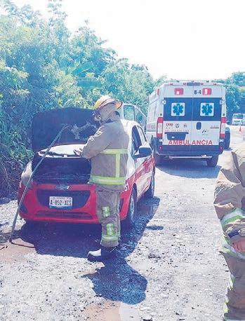 A punto de incendiarse un auto de renta frente a la localidad de Pueblo Viejo, voluntarios y bomberos lograron sofocar el fuego.