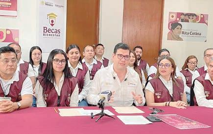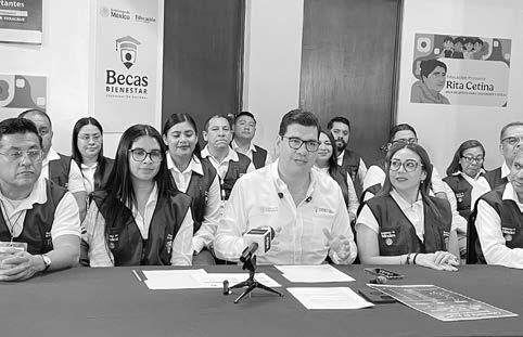 Anunció que los estudiantes de educación media superior y superior recibirán el pago de dos bimestres de becas en abril. “Estamos cubriendo el padrón de Educación Básica, y Media Superior y Superior se hará el pago hasta abril” Carlos Villa resaltó que la presidenta de México Claudia Sheinbaum y el coordinador nacional de Becas, Julio César León Trujillo anunciaron la Beca de apoyo para uniformes y útiles Rita Cetina a estudiantes de educación Primaria. Esta beca será entregada cada año con un monto de 2 mil 500 pesos, y este apoyo se sumará al de la Beca Benito Juárez. Indicó que en Veracruz hay más de 9 mil escuelas primarias públicas, y el objetivo es garantizar que todos los estudiantes que aún no cuentan con apoyo puedan acceder a este nuevo beneficio impulsado por la presidenta Claudia Sheinbaum y coordinado a nivel nacional por el maestro Julio León Trujillo.