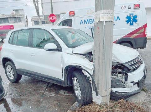 Tras ser impactada por otra camioneta, una dama perdió el control de su unidad y terminó contra un poste, en Poza Rica. PASE A LA 21