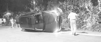 Este percance se registró la noche de este miércoles, cuando una camioneta Mazda, color gris con placas de circulación del estado, que circulaba a exceso de velocidad terminó volcada sobre el pavimento.