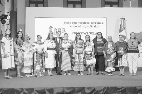 años, una serie de obstáculos, por ello, es indispensable que a través de su voz se conozca su lengua y se reivindiquen cada uno de sus derechos. En la conferencia matutina, leyeron la Cartilla de los Derechos de las Mujeres, que ha sido traducida a 35 lenguas originarias: Angélica González Pinillos en náhuatl; Teresa de