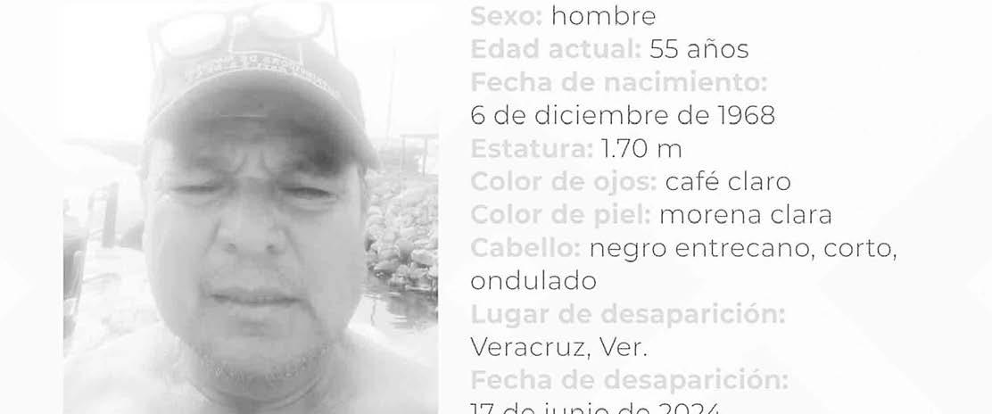 La Comisión Estatal de Búsqueda (CEB) reportó la desaparición del presidente de la Coalición de Pescadores de Veracruz, Nicolás Rivera Domínguez, cuyo paradero se desconoce desde el lunes de esta semana, por lo que solicitó la colaboración de los ciudadanos para su localización
