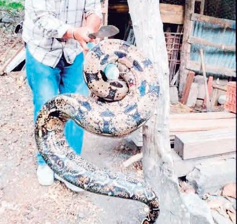 La serpiente medía aproximadamente dos metros de largo, quien, al parecer, llevaba varios días en esa zona, pues se había comido cerca de 12 gallinas, por lo que, para la familia fue una pérdida en su economía, pues se quedaron sin su sustento.