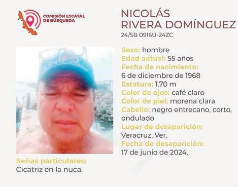 De acuerdo a la ficha 24/SB0916U24ZC, publicada por la CEB, Nicolás Rivera Domínguez cuenta con 55 años de edad y desapareció en la ciudad de Veracruz el 17 de junio.