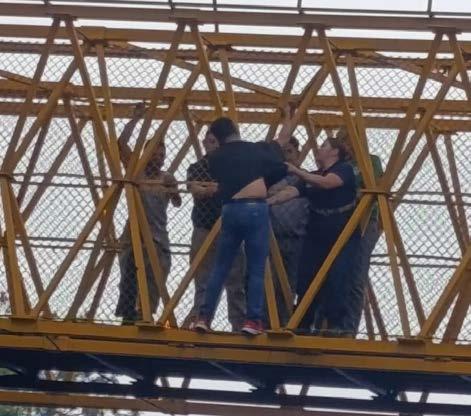 El sujeto subió al puente por fuera de la protección y la gente pensó que pretendía suicidarse.