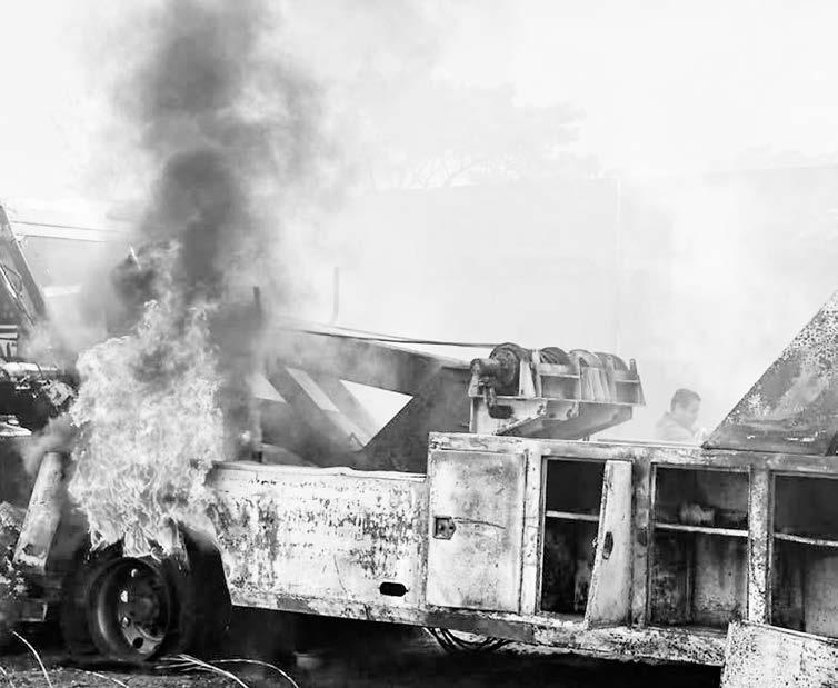 Se incendian cuatro autobuses y una grúa en Nanchital