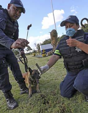 cos. “Nos mantenemos capacitando a los perros y también a los policías, comenzamos con los canes que ya están en edad para que desempeñen actividades y se especialicen en localizar drogas, personas, cadáveres y explosivos”, precisó.
