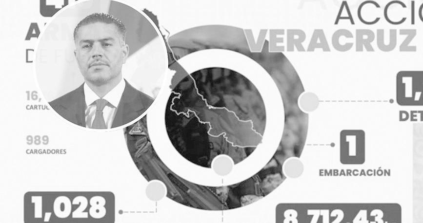 Derivado del reforzamiento de acciones coordinadas en Veracruz, por instrucción de la presidenta Claudia Sheinbaum, se logró la detención de mil 254 personas, el aseguramiento de ocho toneladas de droga, 400 armas de fuego, mil 028 vehículos y una embarcación.