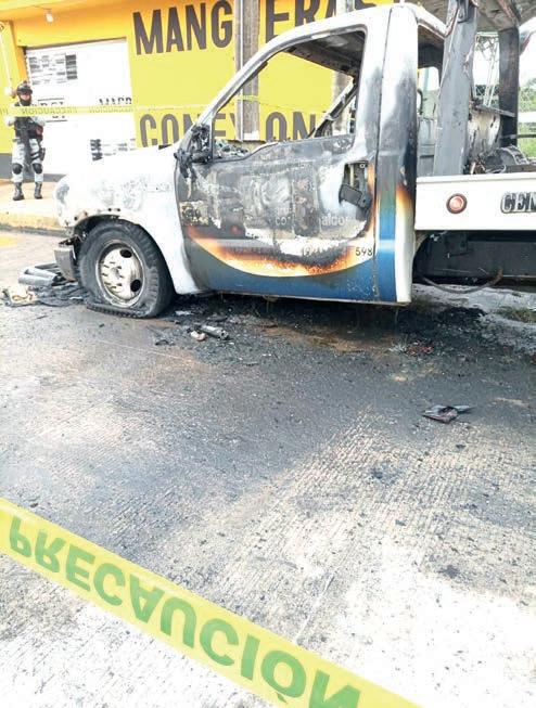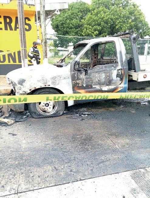 Una grúa propiedad de la empresa Grúas Santa Fe fue incendiada durante la madrugada de este lunes en la carretera Costera del Golfo, justo frente al distribuidor vial de la “Y” con dirección hacia