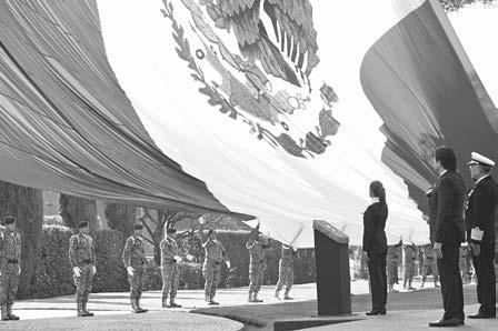 Durante la ceremonia, la Comandanta Suprema de las Fuerzas Armadas tomó protesta y abanderó a mil escoltas de escuelas secundarias y de Educación Media Superior de todo el país: 80 desde Campo Marte y 920 de manera simultánea en 31 entidades federativas, así como a 56 escoltas de las Fuerzas Armadas de México.