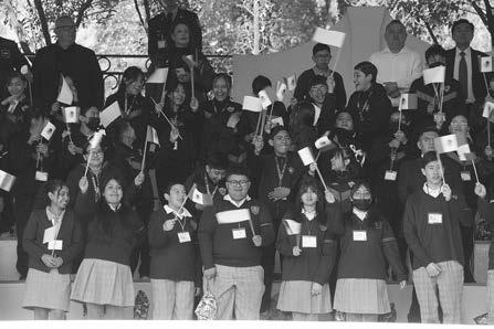 “Alcemos la mirada al futuro, con nuestra bandera al frente como faro y como promesa porque no somos un pueblo que olvida, somos un pueblo que recuerda y que siempre avanza hacia el porvenir; somos historia que inspira, somos fuerza que une, somos siempre esperanza que florece; somos mexicanas y mexicanos orgullosos de nuestra patria, orgullosas y orgullosos de nuestra bandera, orgullosas y orgullosos de llevar en el alma el nombre eterno de nuestra patria”, proclamó a niñas, niños y jóvenes del país, presentes en la ceremonia.
