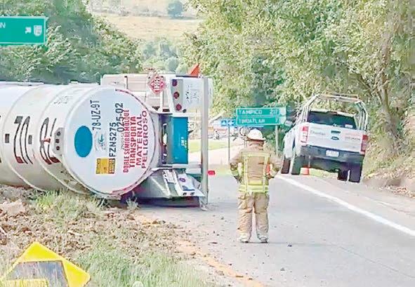 Volcadura de pipa con diésel en la México–Tuxpan, a la altura de El Caracol, genera fuga y cierre parcial en Tihuatlán. PASE A LA 21