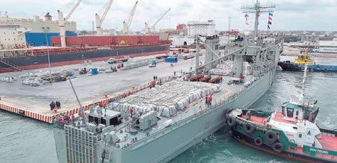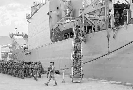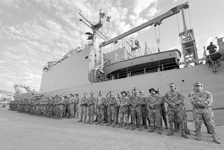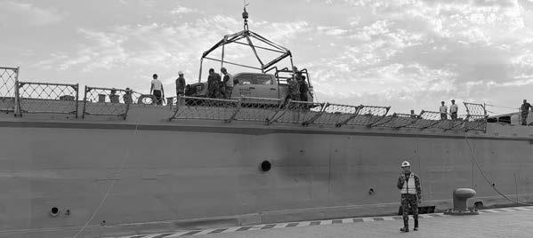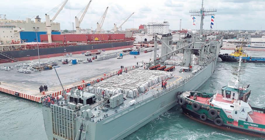 anfibias de Infantería de Marina con su equipo táctico y armamento orgánico, 18 vehículos de asalto anfibio y 2,000 toneladas de carga sobre la cubierta de tanques; asimismo, con una cubierta de vuelo con la infraestructura para recibir helicópteros, entre otras. Es importante destacar que a la par, este Mando ha desplegado personal naval con apoyo de embarcaciones, aeronaves y vehículos de la Armada de