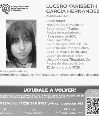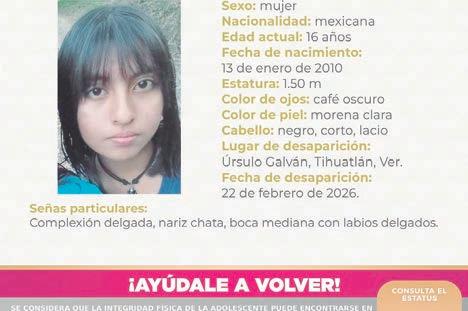 Lucero Yarisbeth García Hernández, 15 años, desaparecida el 22 de febrero. Por su edad, se activó la Alerta Amber.