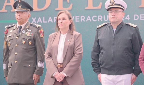 En el marco del 205 aniversario del Día de la Bandera, la gobernadora Rocío Nahle García encabezó el izamiento del lábaro patrio