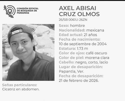 Cuatro jóvenes, entre ellos dos menores de edad, fueron reportados como desaparecidos en Tihuatlán y Papantla, en el norte de Veracruz. Las denuncias fueron presentadas por familiares entre el 21 y 22 de febrero, por lo que autoridades estatales activaron protocolos de búsqueda y Alerta Amber.