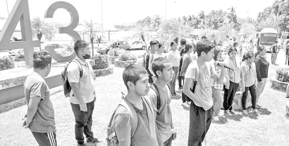 Al concluir, a las 12:15 del día, los jóvenes, quienes viajaron en tres autobuses de pasajeros, entonaron el himno Venceremos, y posteriormente exclamaron una serie de consignas e hicieron el pase de lista del 1 al 43.
