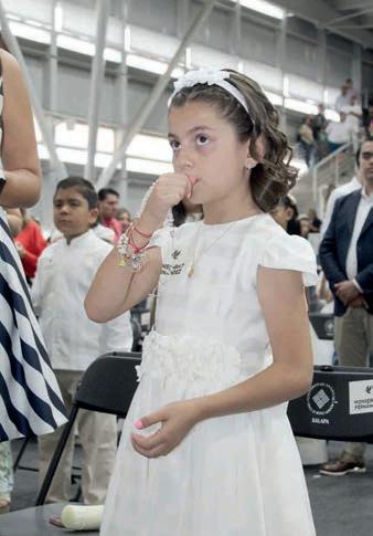 Rocío Oliva con su ahijada Monserrat. Monserrat captada en la ceremonia. Feliz de haber sido confirmada.