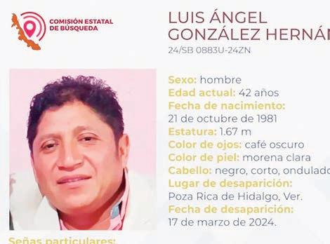 la desaparición de José Daniel Vidal Juárez, de 27 años de edad, con quien se perdió el contacto el pasado 26 de agosto de 2024 en Acayucan, Veracruz. La ficha 24/CI 0561U-24ZS reporta la desaparición de Audry Alizee Pascual González, de 14 años de edad, con quien se perdió el contacto el pasado 19 de septiembre de 2024 en Coatzacoalcos, Veracruz.