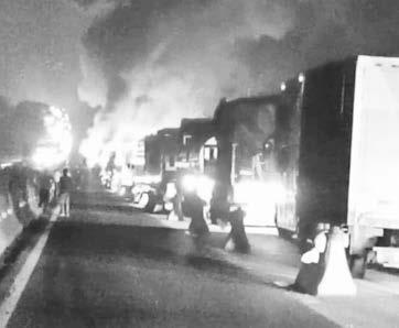 De acuerdo con la Guardia Nacional división carreteras, tras la colisión, se originó un incendio, en el que uno de los choferes perdió la vida calcinado, pues