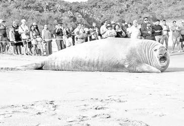que ahí se encontraban. Elementos del cuerpo de bomberos, de Protección Civil municipal y personal de la Procuraduría Federal de Protección al Medio Ambiente (Profepa) arribaron al lugar para activar protocolos a fin de dar seguimiento a las condiciones de salud en las cuales se encontraba el ejemplar. El domingo, el mismo elefante marino