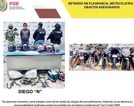 En el lugar se logró la detención en flagrancia de Diego “N”, así como el aseguramiento de hierba verde seca con características similares a las de la marihuana, diversas motocicletas, un automóvil, cascos para motocicleta, placas NIV, documentos diversos, teléfonos celulares, múltiples llaves y autopartes para moto.