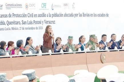 XALAPA.- La gobernadora Rocío Nahle García participó en la Ceremonia de reconocimiento al personal que participó en la aplicación del Plan DN-III-E y Plan Marina en Hidalgo, Puebla, Querétaro, San Luis Potosí y Veracruz, encabezada por la presidenta Claudia Sheinbaum Pardo en la Base Aérea Militar Número 1. A nombre del pueblo de Veracruz, la Mandataria expresó su profundo agradecimiento a quienes intervinieron en las labores de auxilio, rescate y restablecimiento de servicios esenciales ante la emergencia ocasionada por las lluvias extraordinarias de octubre.
