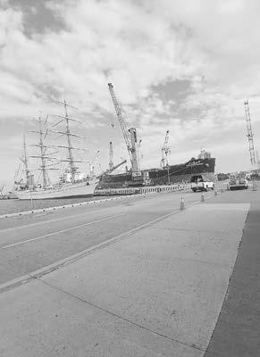 La embarcación se resguardó en un muelle de la bahía sur del puerto, por el pronóstico de rachas de viento del Norte de hasta 70 km/h