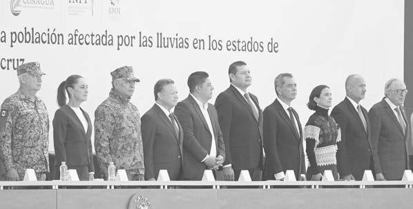 Destacó la entrega del personal de las Fuerzas Armadas, así como la coordinación del Gobierno de México y de las dependencias que integran ambos planes de protección civil: “A nombre del pueblo de Veracruz: ¡Gracias, gracias, gracias! Eternamente agradecidos con la presidenta Claudia Sheinbaum Pardo, con las Fuerzas Armadas, con el Gobierno de México y con todo el pueblo de México por su solidaridad y generosa ayuda”. En la ceremonia se resaltó el esfuerzo interinstitucional que hizo posible desplegar operaciones aéreas, terrestres y logísticas para trasladar víveres, agua, insumos