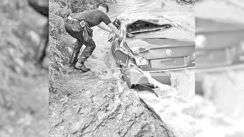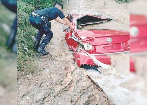 Imprudente conductor no midió las consecuencias e intentó cruzar el río crecido, en Ilamatlán. PASE A LA 22