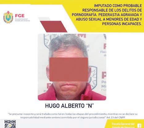 La Fiscalía de Veracruz, realizó imputación en contra de Hugo Alberto “N” como probable responsable de los delitos de pornografía, pederastia agravada y abuso sexual a menores de edad y personas