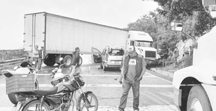 el Dolly de un tráiler doble remolque registró una falla mecánica y ocasionó que se desprendiera la segunda caja seca y terminara varada sobre la carpeta de rodamiento del carril de baja. Los tres accidentes fueron atendidos por oficiales de la Guardia Nacional División Carreteras, quiénes solicitaron al personal de grúas realizar las maniobras correspondientes para enviar las unidades accidentadas al corralón y llevar a cabo el deslinde de responsabilidades.