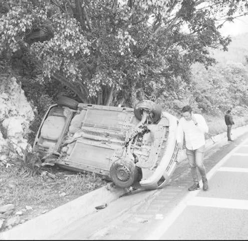 El exceso de velocidad combinado con el piso mojado y la falta de pericia y precaución ocasionó que el joven derrapara, se saliera de la cinta asfáltica y se golpeara fuertemente la cabeza con una roca de tamaño considerable, hasta terminar inconsciente.